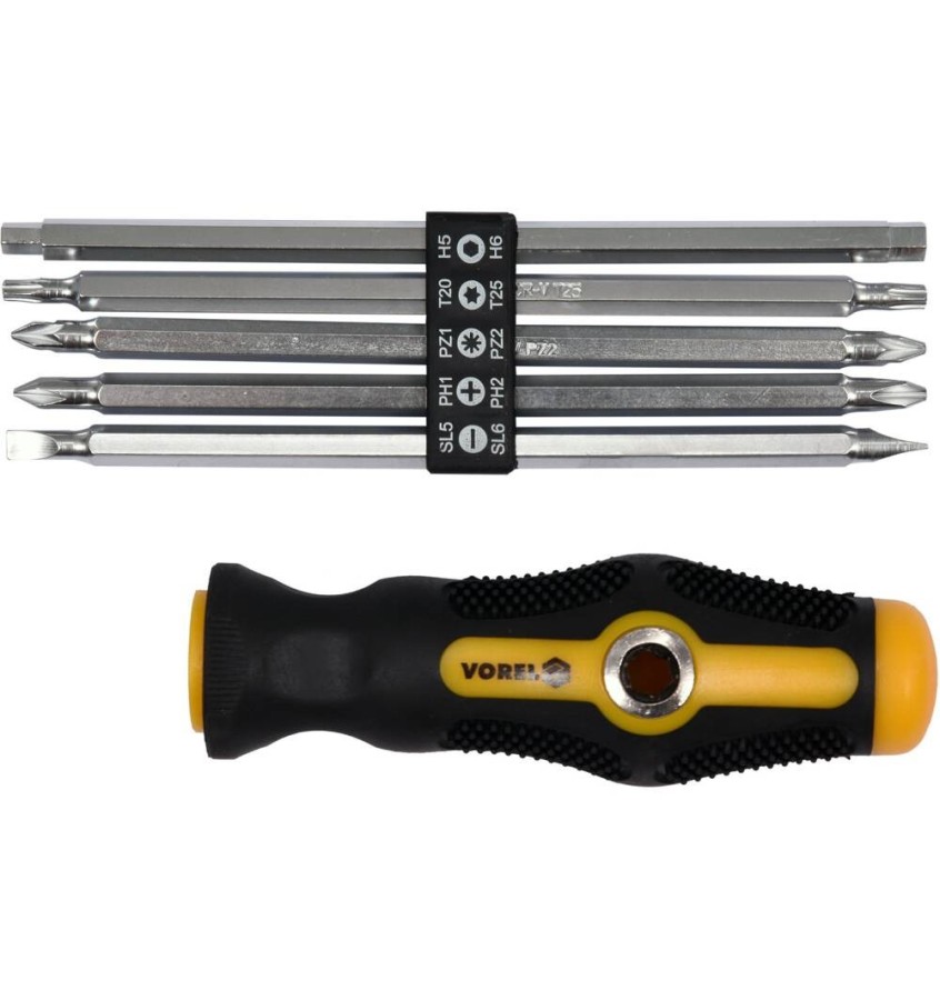 ZESTAW KOŃCÓWEK. ŚRUBOKRĘT 6CZ. Z UCHWYTEM Vorel 64960