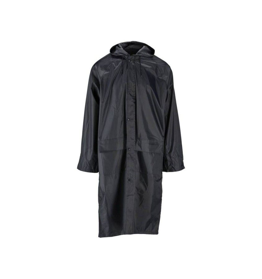 Lekki płaszcz przeciwdeszczowy marki Vorel z dwiema dużymi kieszeniami i regulowanym kapturem. Poliester pokryty PVC to materiał wodoodporny i nie przepuszczający powietrza. Nadmiar ciepła wydostaje się spod materiału za pomocą szczelin wentylacyjnych na plecach oraz otworów pod pachami.