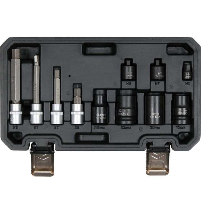 - klucz trzpieniowy sześciokątny 3/8” x4 (7 mm x2, 9 mm, 11 mm), nasadka specjalna sześciokątna 3/8” x3 (7 mm, 8 mm, 9 mm),