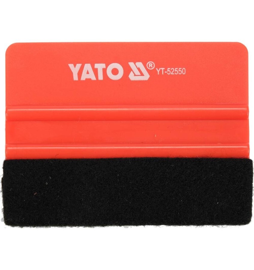 Plastikowy rakiel do dociskania foli wymiary 100 x 73 mm. W dolnej części do dociskania, wyklejony miękką włókniną / filcem na wysokość ok 30 mm z obu stron.
