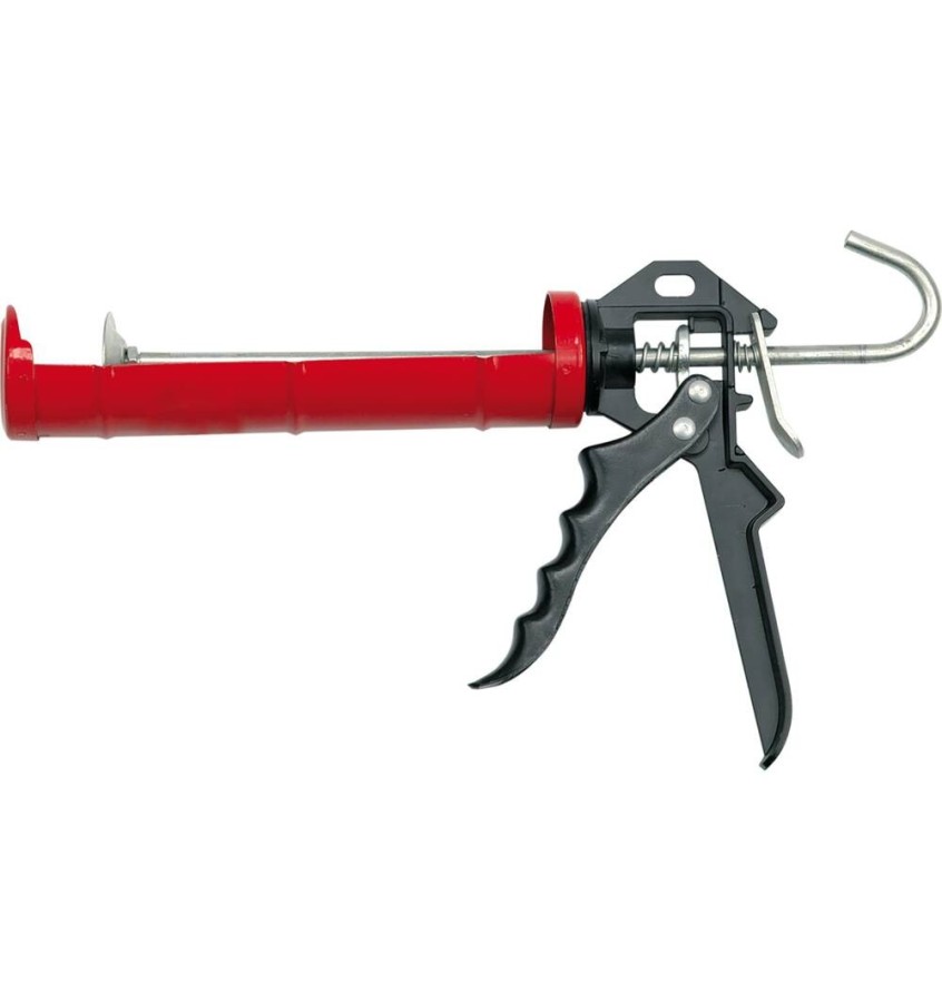 Lekki wyciskacz do mas 300 ml, wykonany z blachy, ze wzmocniona częścią napędu tłoka, wykonaną z aluminium.