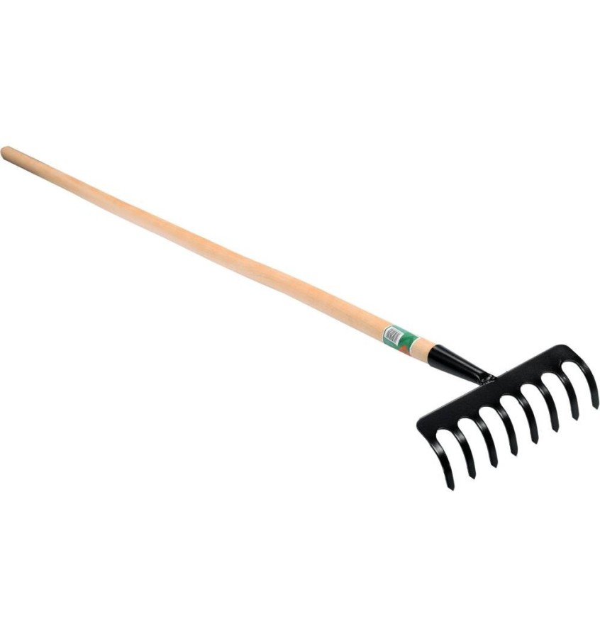 Grabie metalowe 8 zębów z trzonkiem drewnianym 35741 Flo