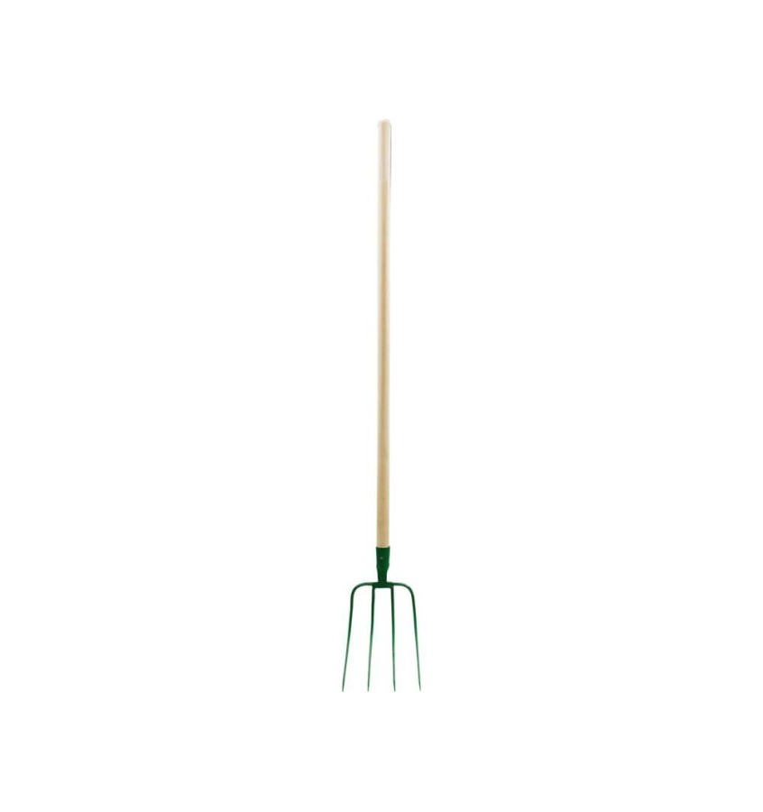 Wytrzymałe widły z 4 zębami oprawione na trzonku wykonanym z drewna. Służą do prac polowych i ogrodniczych, np. do przenoszenia słomy, siana i odpadów roślinnych, do rozbijania gleby po przekopaniu.