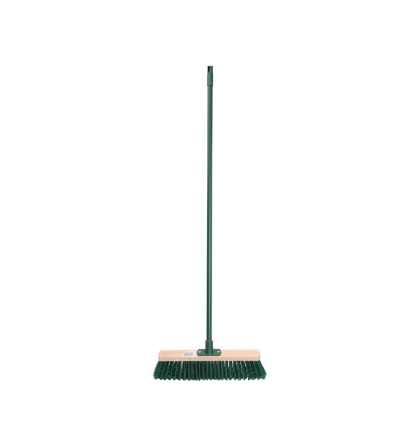Miotła uliczna z drewnianym korpusem. W części roboczej wykonana z twardego włosia z tworzywa sztucznego. Osadzona na zakończonym gwintem trwałym metalowym trzonku powleczonym warstwą tworzywa sztucznego. Przydatna przy zewnętrznych pracach porządkowych np. do zamiatania liści, piasku, kurzu, świeżego śniegu itp.
