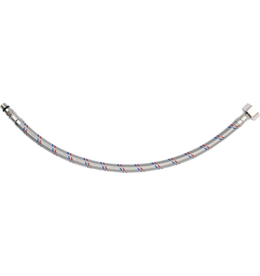 Elastyczny wąż przyłączeniowy w oplocie ze stali nierdzewnej do baterii. Przeznaczony jest do wody ciepłej i zimnej. Posiada atest PZH na kontakt z wodą pitną. Długość 400mm. Max ciśnienie 1MPa. Max temp 90st C. Średni przepływ 32L/min. Średnica wewnętrzna 8mm, a zewnętrzna 12mm. Gwint przyłączeniowy: żeński 1/2' x męski M10 (17mm krótki). Przewód gumowy wykonany z gumy EPDM, przyłącza mosiężne niklowane, uszczelka z gumy EPDM. Przeznaczony jest od podłączenia baterii sztorcowych umywalkowych i wannowych z zaworami.
