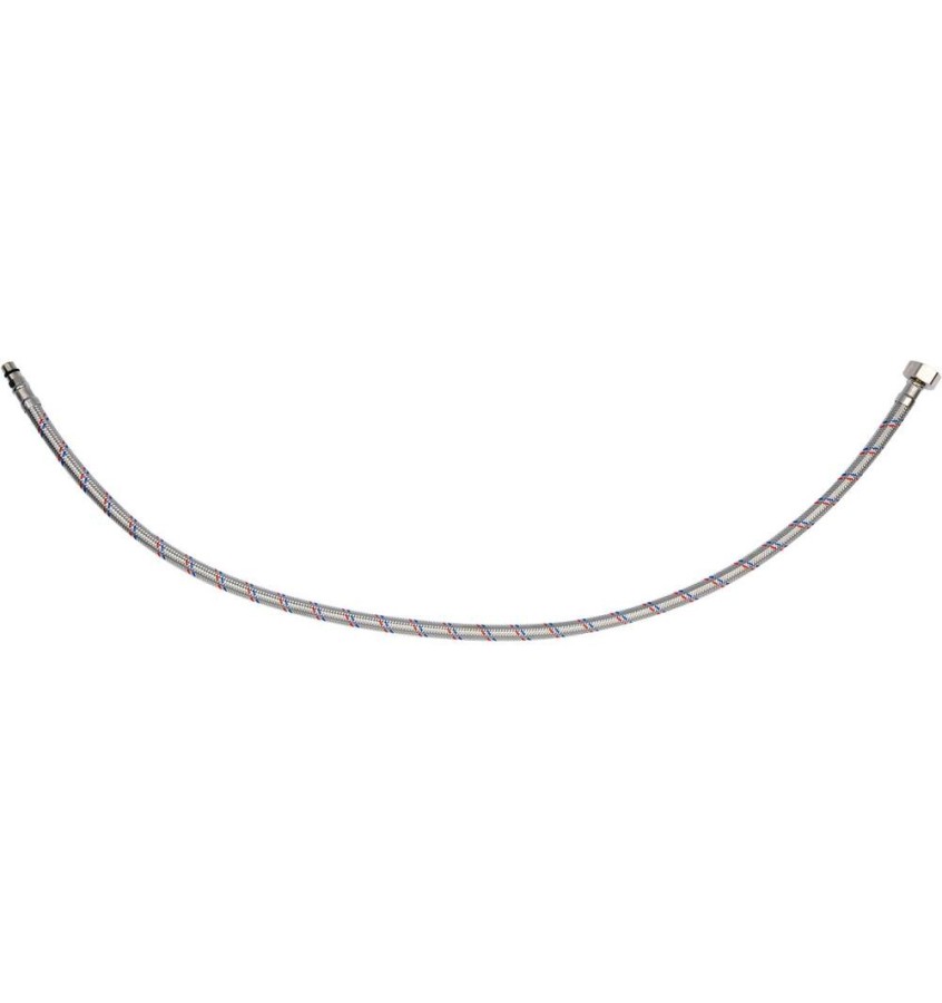 Elastyczny wąż przyłączeniowy w oplocie ze stali nierdzewnej do baterii. Przeznaczony jest do wody ciepłej i zimnej. Posiada atest PZH na kontakt z wodą pitną. Długość 800mm. Max ciśnienie 1MPa. Max temp 90st C. Średni przepływ 32L/min. Średnica wewnętrzna 8mm, a zewnętrzna 12mm. Gwint przyłączeniowy: żeński 1/2' x męski M10 (17mm krótki). Przewód gumowy wykonany z gumy EPDM, przyłącza mosiężne niklowane, uszczelka z gumy EPDM. Przeznaczony jest od podłączenia baterii sztorcowych umywalkowych i wannowych z zaworami.