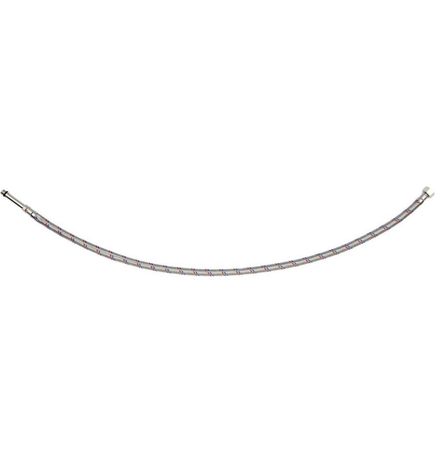 Elastyczny wąż przyłączeniowy w oplocie ze stali nierdzewnej do baterii. Przeznaczony jest do wody ciepłej i zimne. Posiada atest PZH na kontakt z wodą pitną. Długość800mm. Max ciśnienie 1MPa. Max temp 90st C. Średni przepływ 32L/min. Średnica wewnętrzna 8mm, a zewnętrzna 12mm. Gwint przyłączeniowy: żeński 3/8' x męski M10 (50mm długi). Przewód gumowy wykonany z gumy EPDM, przyłącza mosiężne niklowane, uszczelka z gumy EPDM. Przeznaczony jest od podłączenia baterii sztorcowych umywalkowych i wannowych z zaworami.