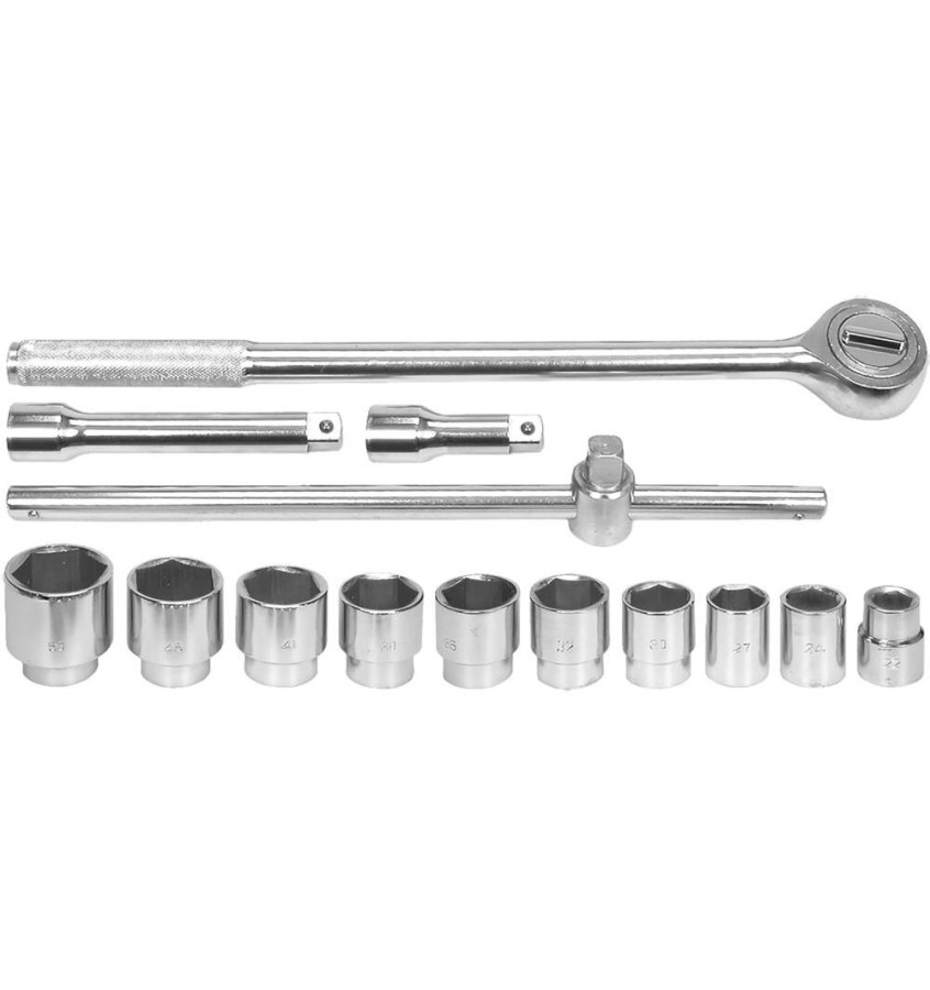 - nasadki 3/4': 22, 24, 27, 30, 32, 36, 38, 41, 46, 50 mm przedłużki 3/4': 100 mm i 200 mm grzechotka 3/4', 495 mm napęd typ T - 3/4', 456 mm