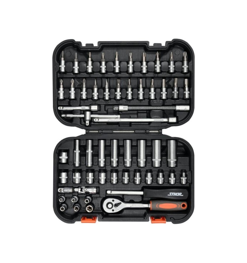 Zestaw narzędziowy STHOR składa się z 56 elementów umieszczonych w wygodnej walizce z tworzywa sztucznego. Narzędzia zostały precyzyjnie wykonane z materiałów zapewniających ich niezawodność.