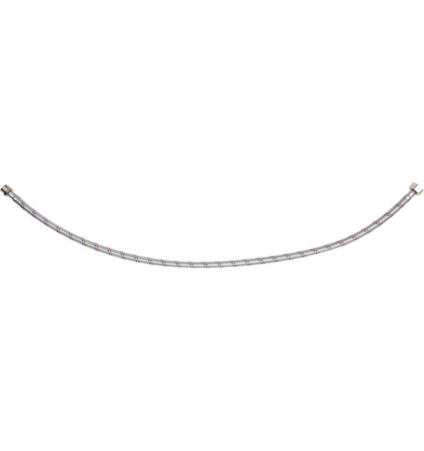 Elastyczny wąż przyłączeniowy w oplocie ze stali nierdzewnej. Przeznaczony jest do wody ciepłej i zimnej. Posiada atest PZH na kontakt z wodą pitną. Długość 800mm. Max ciśnienie 1MPa. Max temp 90st C. Średni przepływ 32L/min. Średnica wewnętrzna 8mm, a zewnętrzna 12mm. Gwint przyłączeniowy: żeński 1/2' x męski 3/8'. Przewód gumowy wykonany z gumy EPDM, przyłącza mosiężne niklowane, uszczelka z gumy EPDM. Przeznaczony jest od podłączenia spłuczek toaletowych czy zaworów.