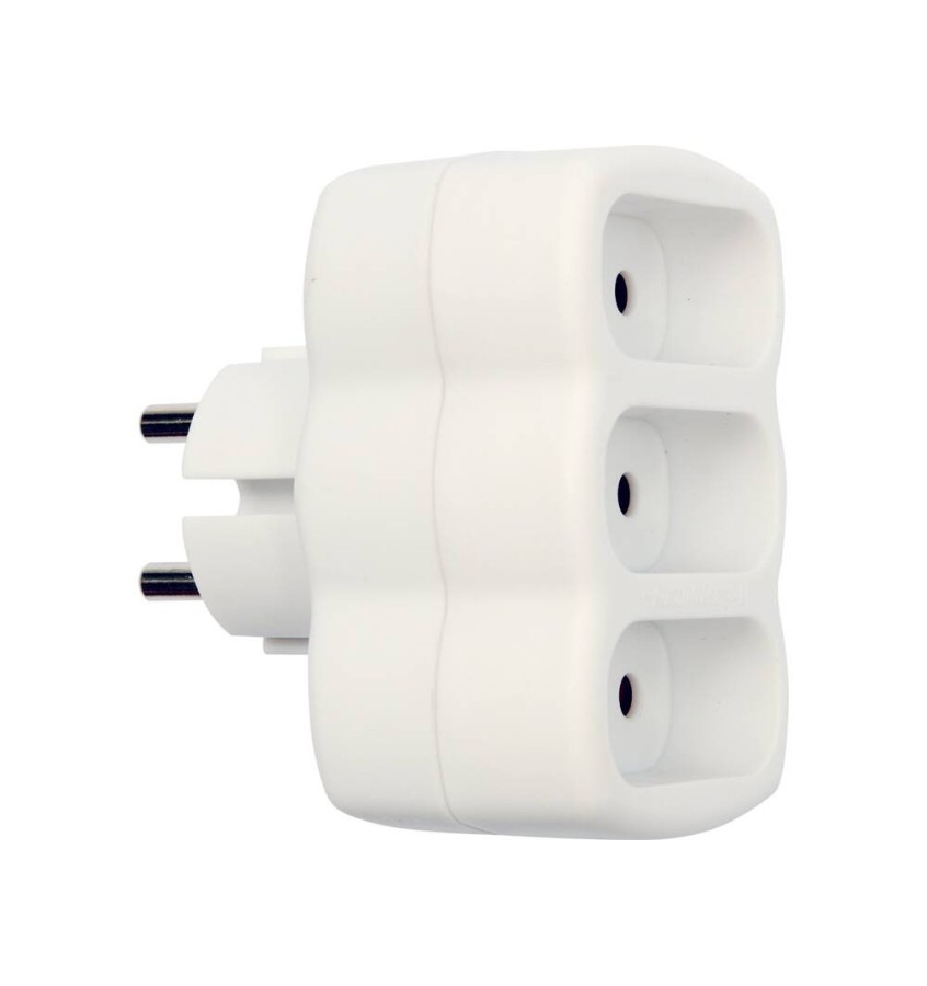 Klasyczny rozgałęźnik bez uziemienia. Posiada trzy gniazda płaskie (do wtyczek płaskich 2P).