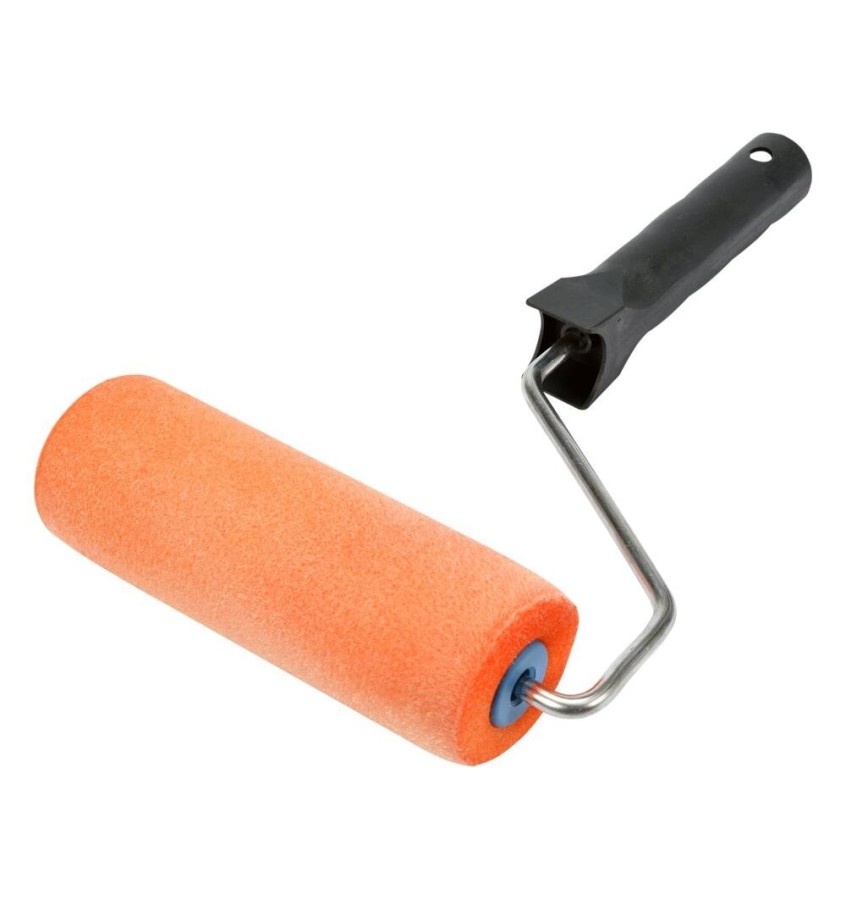 Wałek malarski wykonany z gąbki flokowanej (pokrytej krótkimi włóknami) o długości 15 cm i średnicy 5 cm.