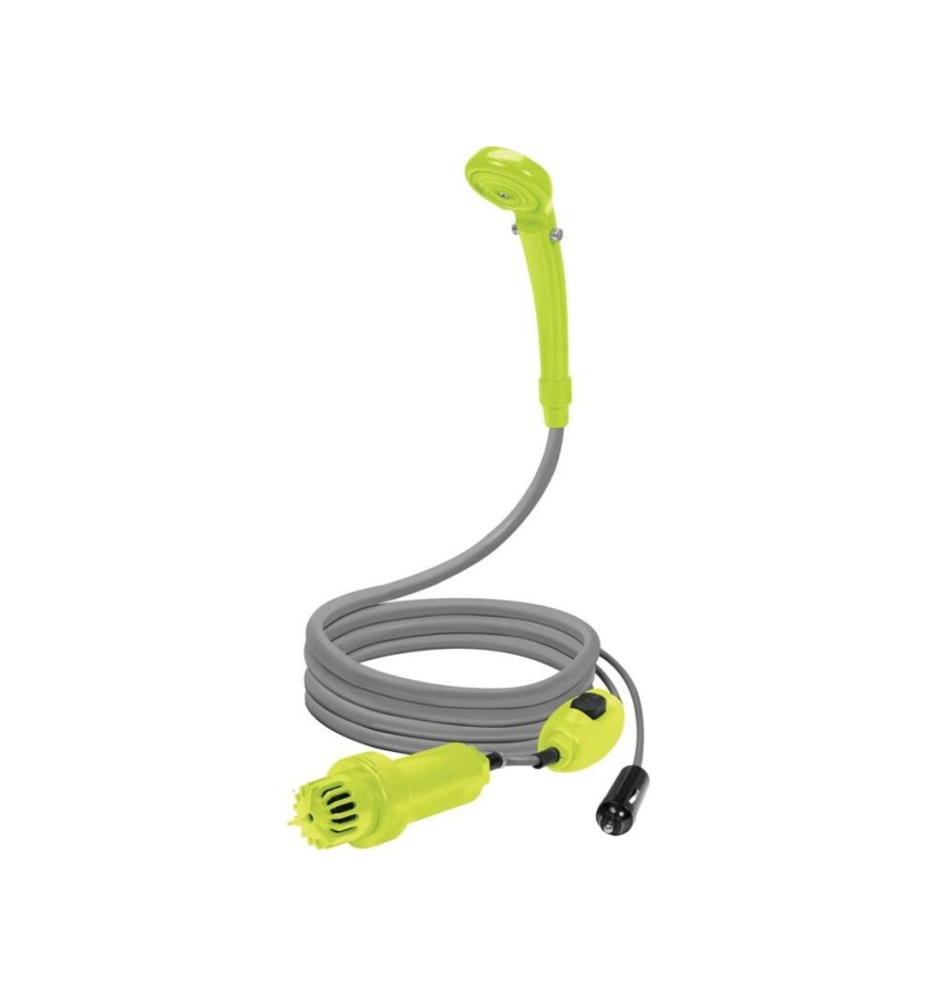 Przenośny prysznic wyposażony w elektryczną pompkę. Przydatny na kempingach, biwakach oraz w miejscach bez dostępu do łazienki.