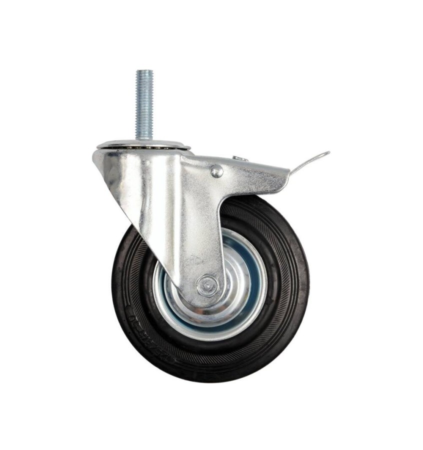 Kółko skrętne 200mm z czarną gumą, hamulcem i trzpieniem gwintowanym, łozyskowane 87337 Vorel