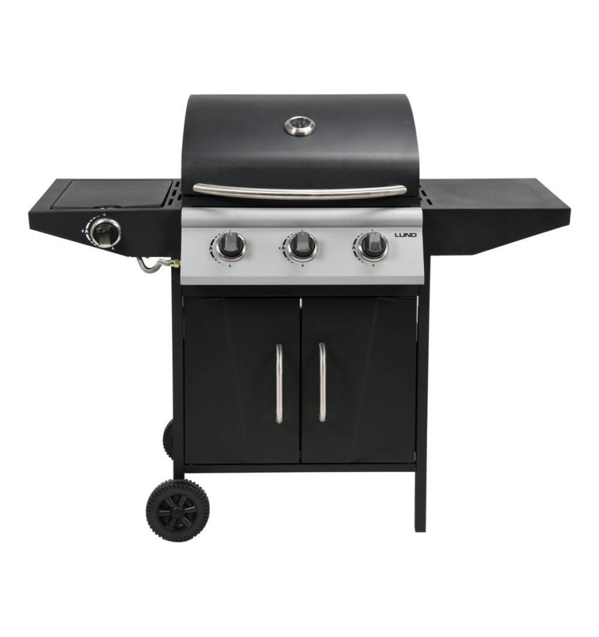 Profesjonalny grill gazowy 3+1 do przygotowywania potraw na świeżym powietrzu, z wygodną regulacją pozwalającą na idealne wypieczenie potraw. Półki boczne oraz pojemna, zamykana szafka ułatwią przechowywanie przypraw i niezbędnych akcesoriów. Palnik boczny o mocy 3,2kW umożliwi gotowanie i podgrzewanie potraw w garnku lub na patelni
