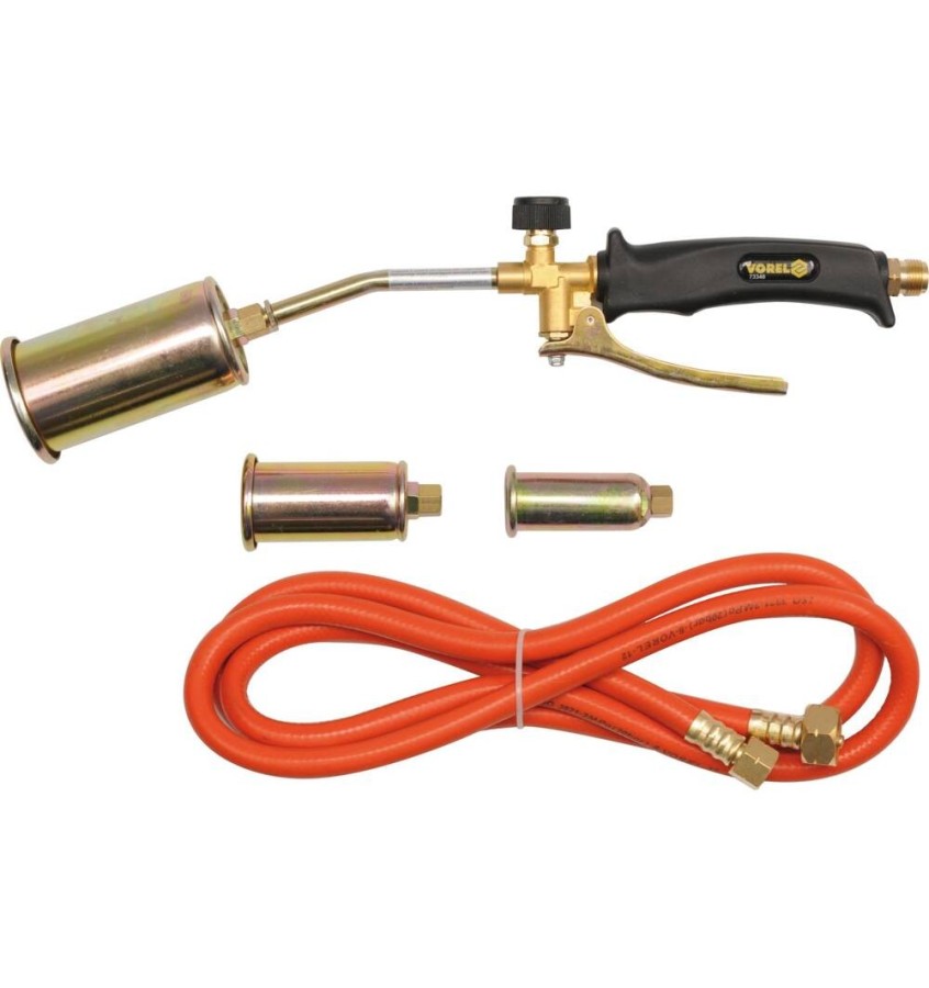 Podstawowy zestaw krótkich palników dekarskich 73340 przeznaczonych do typowych pracy związanych z układaniem papy termozgrzewalnej. W zestawie uchwyt z dźwignią zaworu oszczędnej pracy, wąż z przyłączami do butli i uchwytu oraz trzy dysze płomieniowe do intensywnego nagrzewania lub opalania.