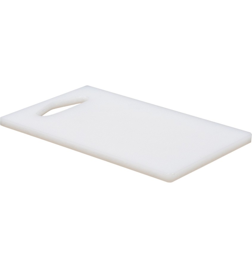 Uniwersalna deska do krojenia w kolorze białym przeznaczona do użytku w gastronomii. Wykonana jest z wysokiej jakości polietylenu, o grubości 10mm, gwarantującego dużą wytrzymałość i żywotność. Deska YATO jest dwustronna oraz posiada wygodny w użyciu uchwyt ułatwiający podnoszenie jej z blatu stołu, a także powieszenie po zakończeniu pracy. Zaokrąglone krawędzie oraz staranne wykonanie zwiększają bezpieczeństwo podczas pracy.