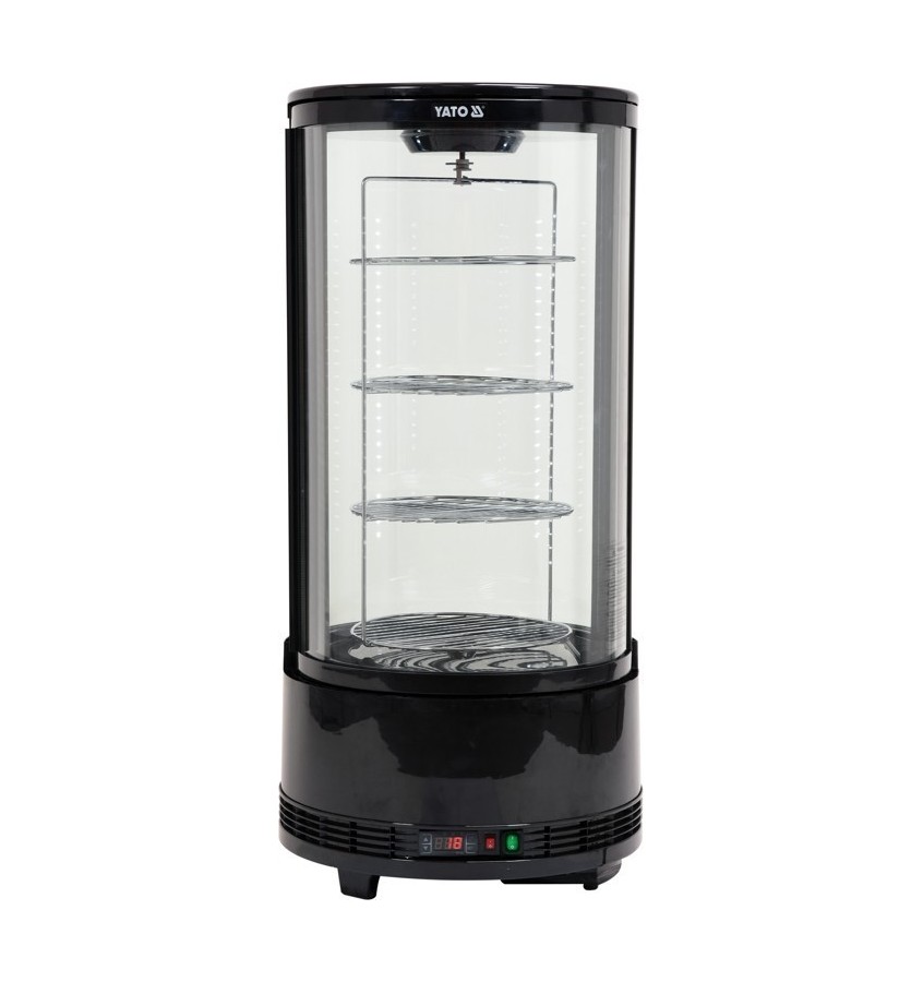 Witryna chłodnicza okrągła YATO nastawna o pojemności 73L w kolorze czarnym.