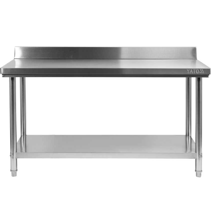 Blat z tyłu posiada dodatkowy rant o wysokości 100mm, dzięki któremu po przystawieniu stołu do ściany zapobiega on wpadaniu resztek jedzenia za stół znacznie zwiększając higienę pracy.