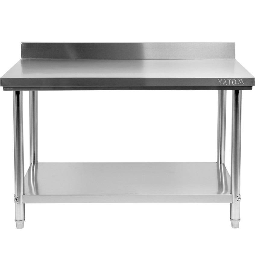 Blat z tyłu posiada dodatkowy rant o wysokości 100mm, dzięki któremu po przystawieniu stołu do ściany zapobiega on wpadaniu resztek jedzenia za stół znacznie zwiększając higienę pracy.