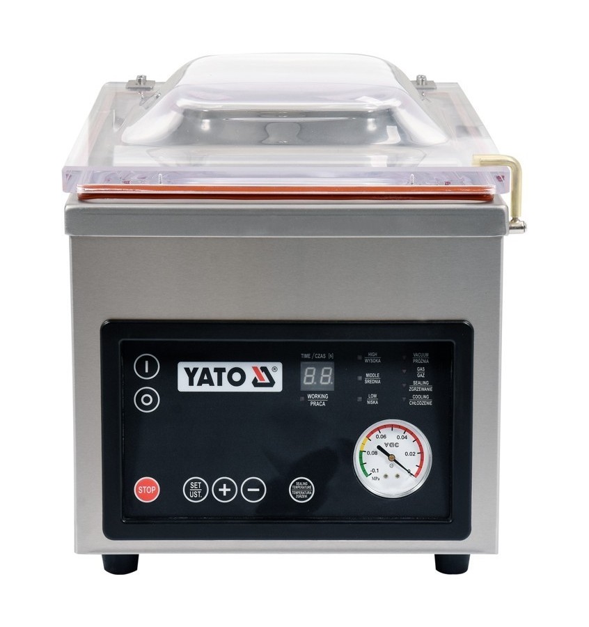 Pakowarka próżniowa marki YATO wykonana jest z najwyższej jakości surowców. Komora próżniowa, o wymiarach 385x280x50(100), zrobiona jest z grubej i masywnej stali nierdzewnej, co gwarantuje bardzo długi okres użytkowania. Zaokrąglone kształty ułatwiają utrzymanie jej w czystości.