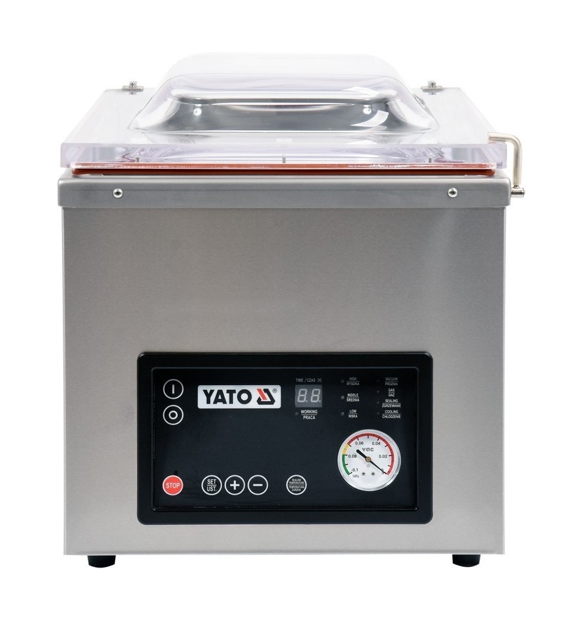 Pakowarka próżniowa marki YATO wykonana jest z najwyższej jakości surowców. Komora próżniowa, o wymiarach 450x370x170 (220), zrobiona jest z grubej i masywnej stali nierdzewnej, co gwarantuje bardzo długi okres użytkowania. Zaokrąglone kształty ułatwiają utrzymanie jej w czystości.