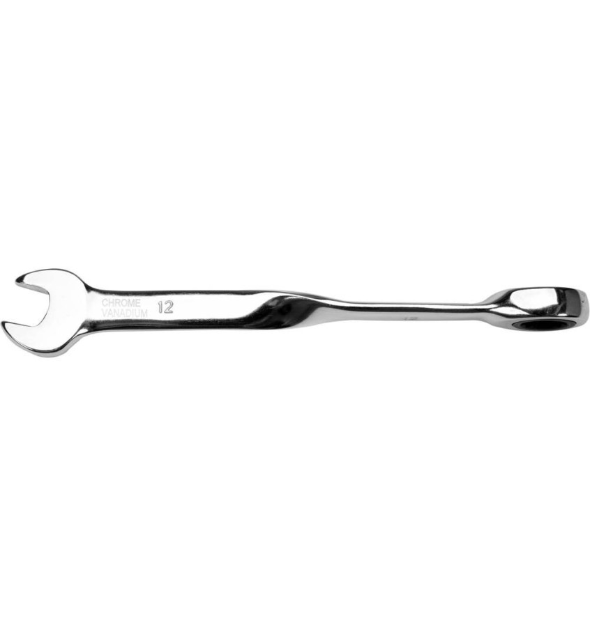 Klucz płasko-oczkowy skręcony z grzechotką 12mm marki YATO YT-01874. Klucz zakończony z jednej strony oczkiem z grzechotką, a z drugiej strony końcówką płaską. Ergonomiczny skręcony kształt ułatwia pracę i zapewnia duży komfort, zwłaszcza w przypadku mocno zapieczonych śrub. • rękojeść skręcona o 90° idealnie układa się w dłoni, przenosząc większy nacisk na klucz podczas dokręcania śrub, przy mniejszym obciążeniu użytkownika • grzechotka pozwala na szybsze dokręcanie i odkręcanie śrub • główka odchylona o 15° • wykonane z wysokogatunkowej stali CrV, powierzchnia polerowana • twardość: 40-45 HRC • 72 zęby.