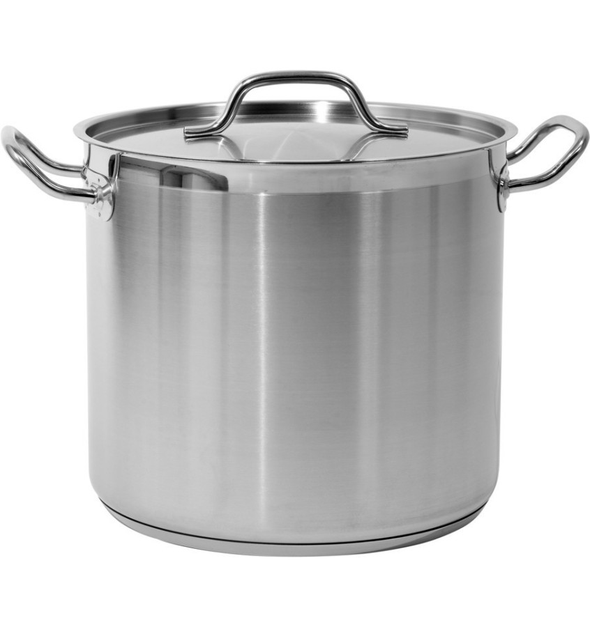 Profesjonalny garnek wysoki z pokrywką, o wymiarach 28x25 cm oraz pojemności 15,4 l.
