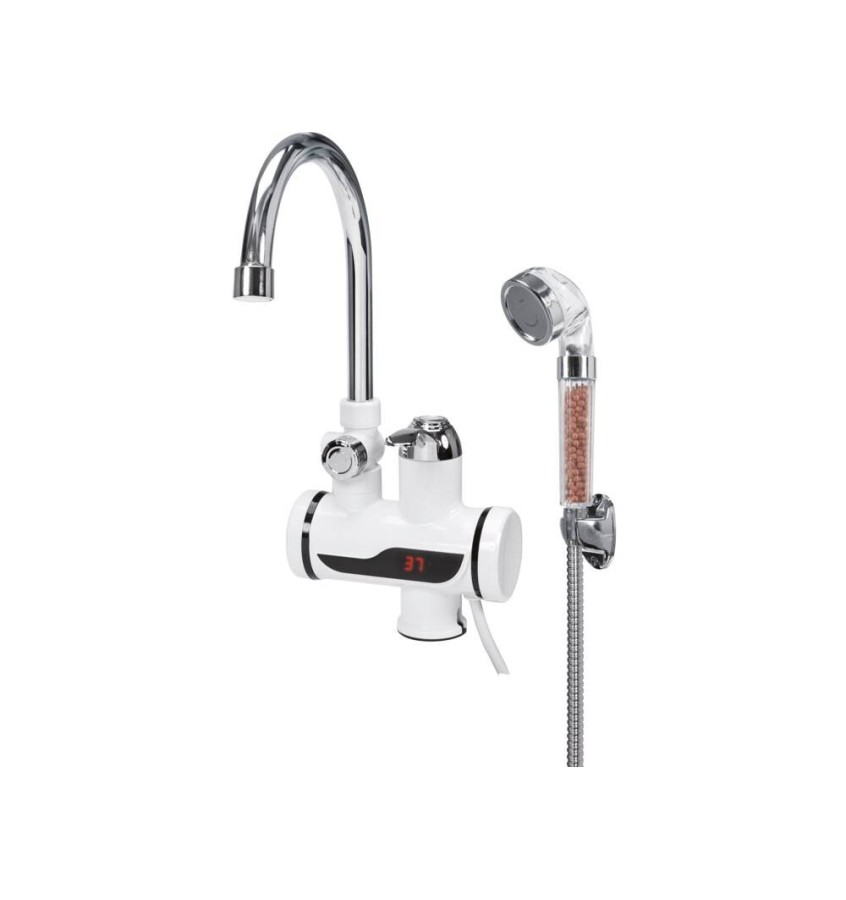 - podgrzewacz wody z wylewką, słuchawka prysznicowa, wąż prysznicowy, uchwyt na słuchawkę prysznicową