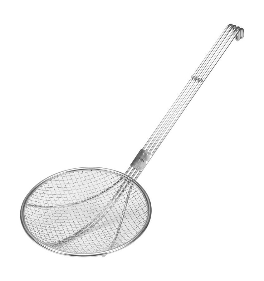 Zewnętrzna średnica cedzaka wynosi 200mm. Natomiast wzmacniana rękojeść o długości 33cm wykonana jest z drutów o grubości 4mm. Dzięki temu łyżka jest bardzo wytrzymała.