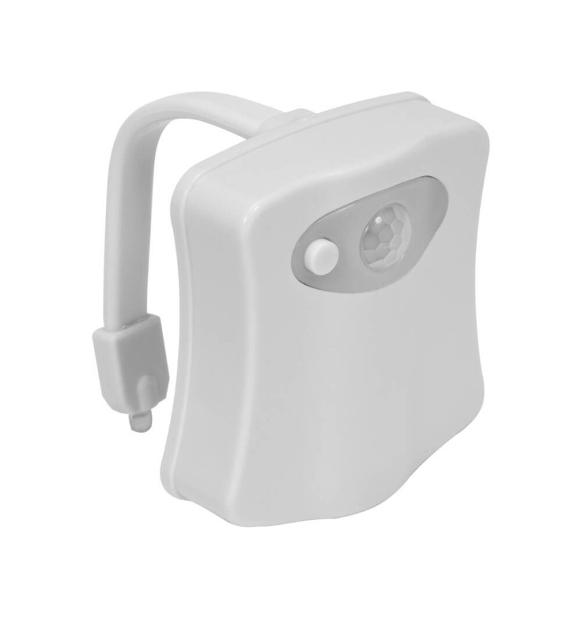Aby niepotrzebnie nie rozładowywać baterii (zasilanie: 3xAAA; nie są dołączone) wbudowany czujnik światła zadba o to, aby lampka uruchamiała się jedynie podczas panującej w toalecie ciemności.