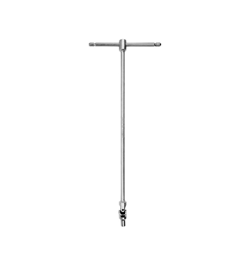 Klucz nasadowy z przegubem typu T marki YatoYT-15271. Wykonany z wytrzymałej narzędziowej stali chromowo-wanadowej 50BV30. Pokrętło pozwala na pracę z nasadką pod dowolnym kątem, ułatwiając pracę.