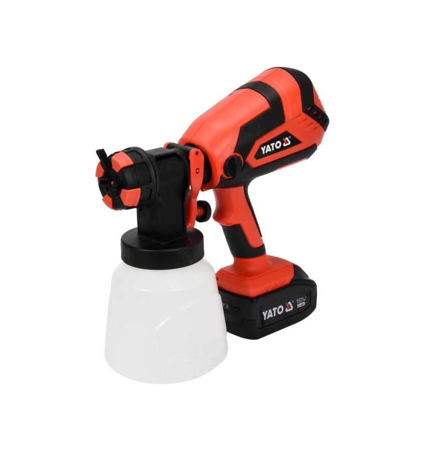 Pistolet natryskowy YATO przeznaczony jest do malowania farbami olejnymi, akrylowymi, emulsyjnymi i podkładowymi oraz impregnatami. Duży przepływ aplikowanej substancji, wynoszący 1 l/min, oraz możliwość użycia gęstej farby (100 din) zapewnia wysoką wydajność pracy. Urządzenie wyposażono we włącznik w spuście pistoletowym z regulacją przepływu, regulację szerokości strumienia oraz zbiornik o pojemności 1 l i dyszę 2,2 mm. Elektronarzędzie jest łatwe w obsłudze i konserwacji.