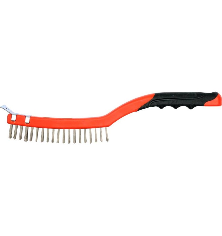 Wykonana z nierdzewnego, sprężystego drutu stalowego osadzonego trwale w korpusie z tworzywa sztucznego. Szczotka profilowana w sposób zwiększający efektywność czyszczenia. Zakończona skrobakiem wykonanym z blachy nierdzewnej.