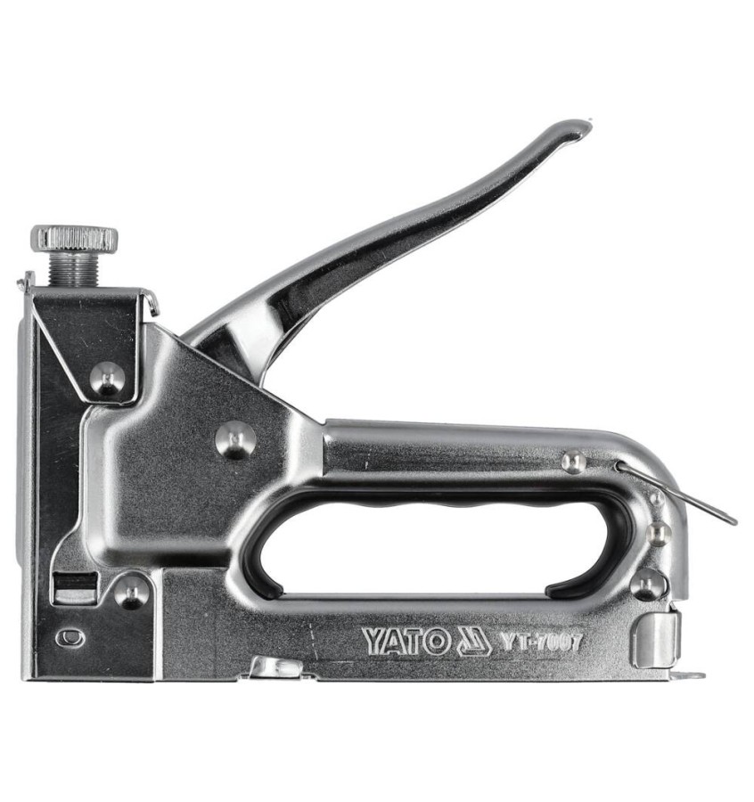 Zszywacz tapicerski przeznaczony do szybkiego łączenia różnych materiałów np. drewna z tkaninami, kartonem, papierem lub skórą. Wykorzystywany w pracach tapicerskich, dekarskich, dekoratorskich, wykończeniach budowlanych itp. Łączy materiały za pomocą wbijanej z dużą siłą stalowej zszywki. Zszywacz przeznaczony jest do wbijania typowych, stalowych, prostokątnych zszywek w zakresie długości od 4-14mm, grubości 0,7mm. Zszywacz z regulacją docisku sprężyny bijaka - regulowana siła uderzenia.