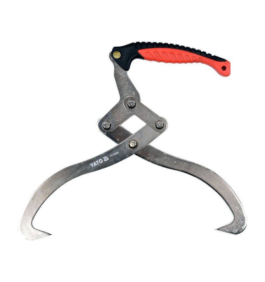 Stalowe kleszcze do przenoszenia pni. Długość ok 450 mm, rozwarcie ok 300 mm, rękojeść z tworzywa.Kleszcze zaciskają się samoczynnie pod wpływem ciężaru, wbijając ostre końce w przenoszony materiał.Przeznaczenie / zastosowanie