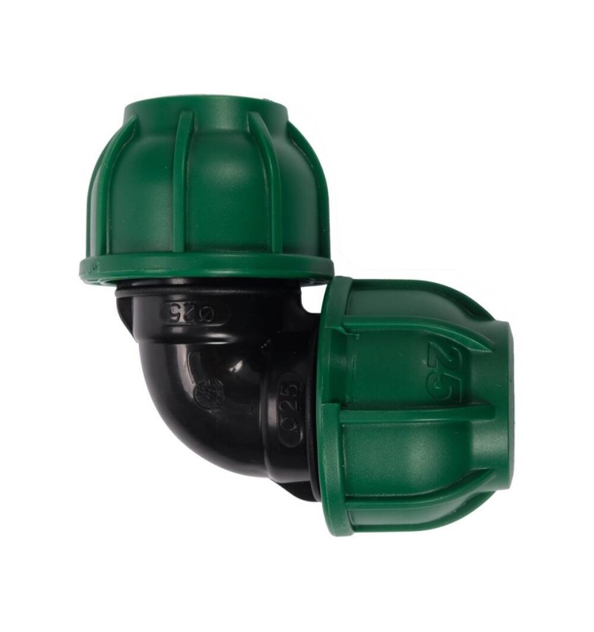 Kolanko przeznaczone do łączenia rur PE w instalacjach wodnych, wykonane z wysokiej jakości polipropylenu.