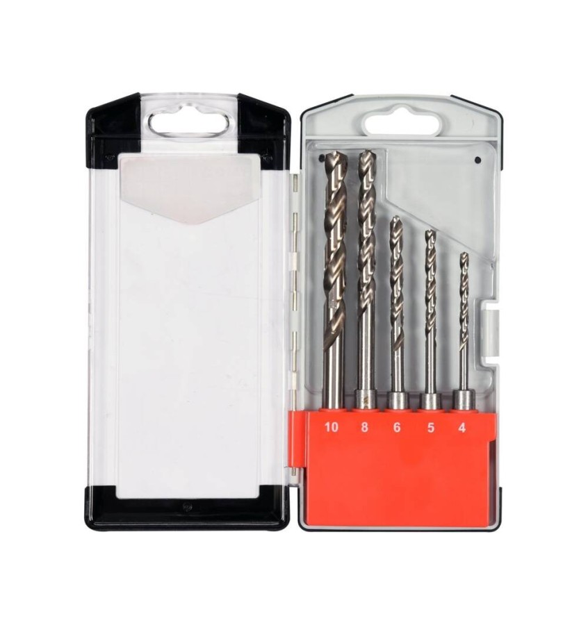 W zestawie 5 wierteł o średnichach: 4.0 mm, 5.0 mm, 6.0 mm, 8.0 mm, 10.0 mm.