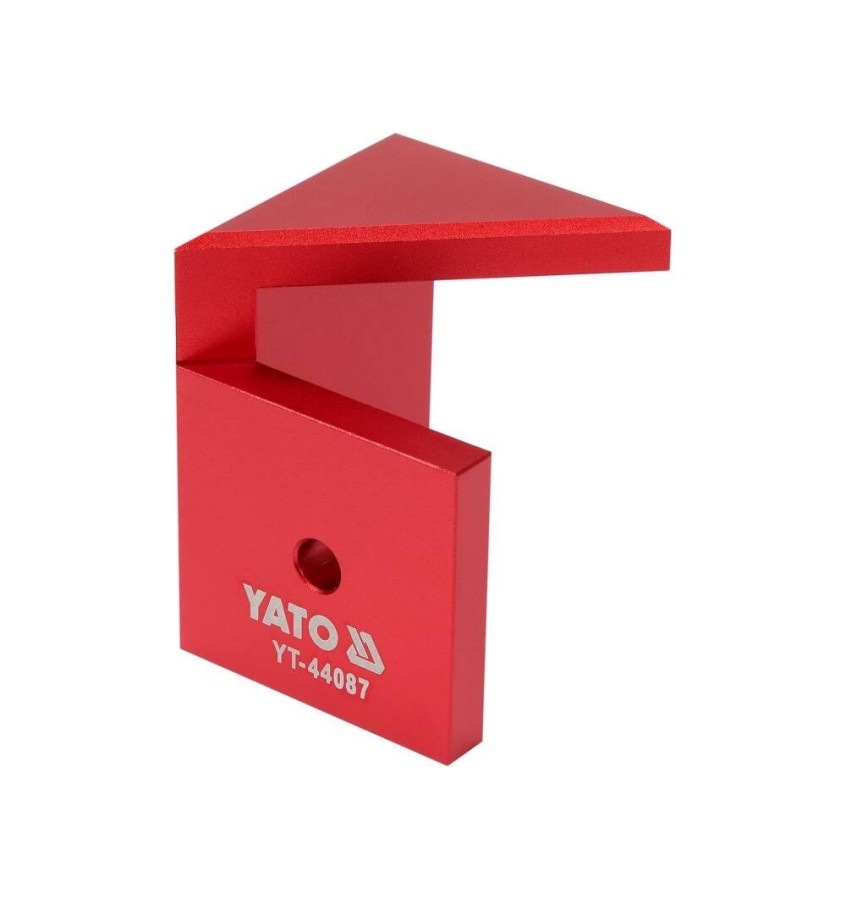 Przymiar traserski wykonany ze stopu aluminium. Konstrukcja zapewnia łatwe mocowanie na kwadratowych i okrągłych elementach drewnianych i innych materiałach.
