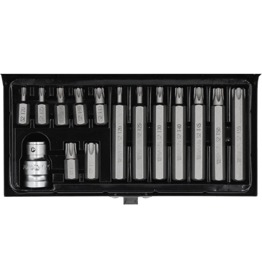 - końcówki 3/8” (9.5 mm): T20, T25, T30, T40, T45, T50, T55 o długości 30 mm i 75 mm
