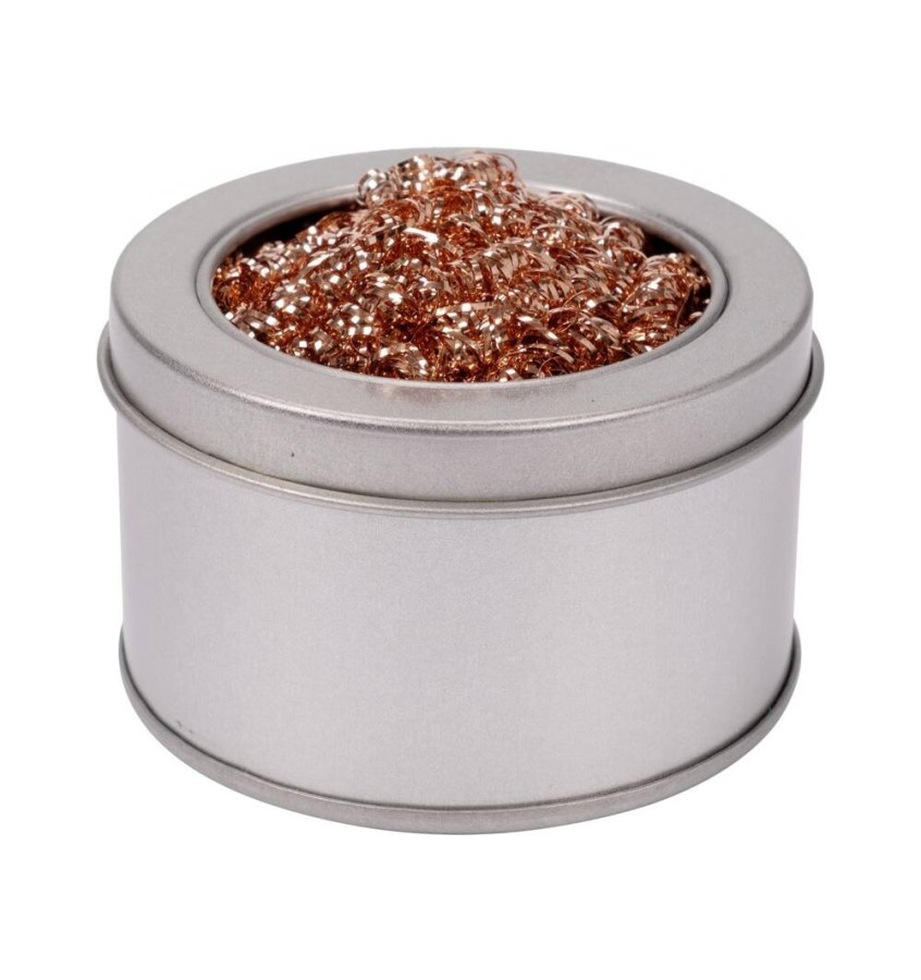 Czyścik do grotów lutownic YT-82510 wykonany z mosiężnych wiórów umieszczonych w metalowej puszcze z otworem w przykrywce.
