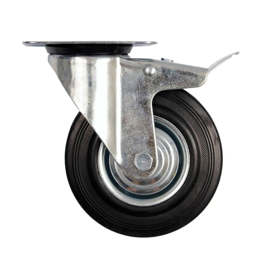 Kółko skrętne z czarną gumą i hamulcem 200mm 87327 Vorel