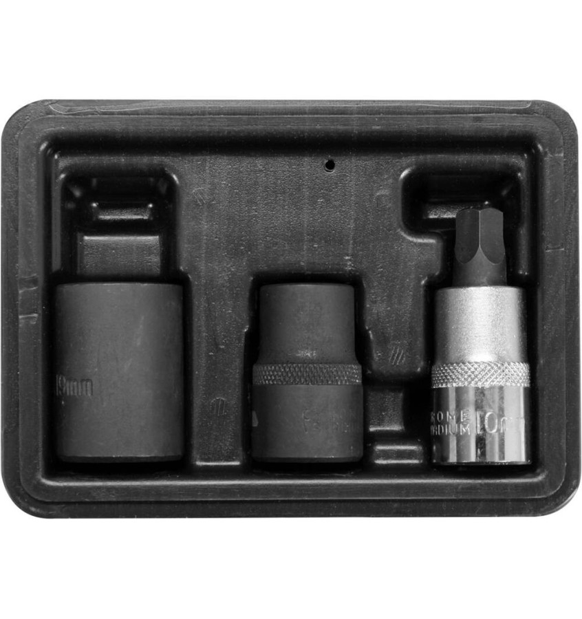 Profesjonalny zestaw 3 nasadek przeznaczonych do obsługi układów hamulcowych typu Bendix i Girling. Umożliwia demontaż i wymianę zacisków hamulcowych w samochodach różnych marek: Ford, Smart, Opel, Citroen, Peugeot, Renault.