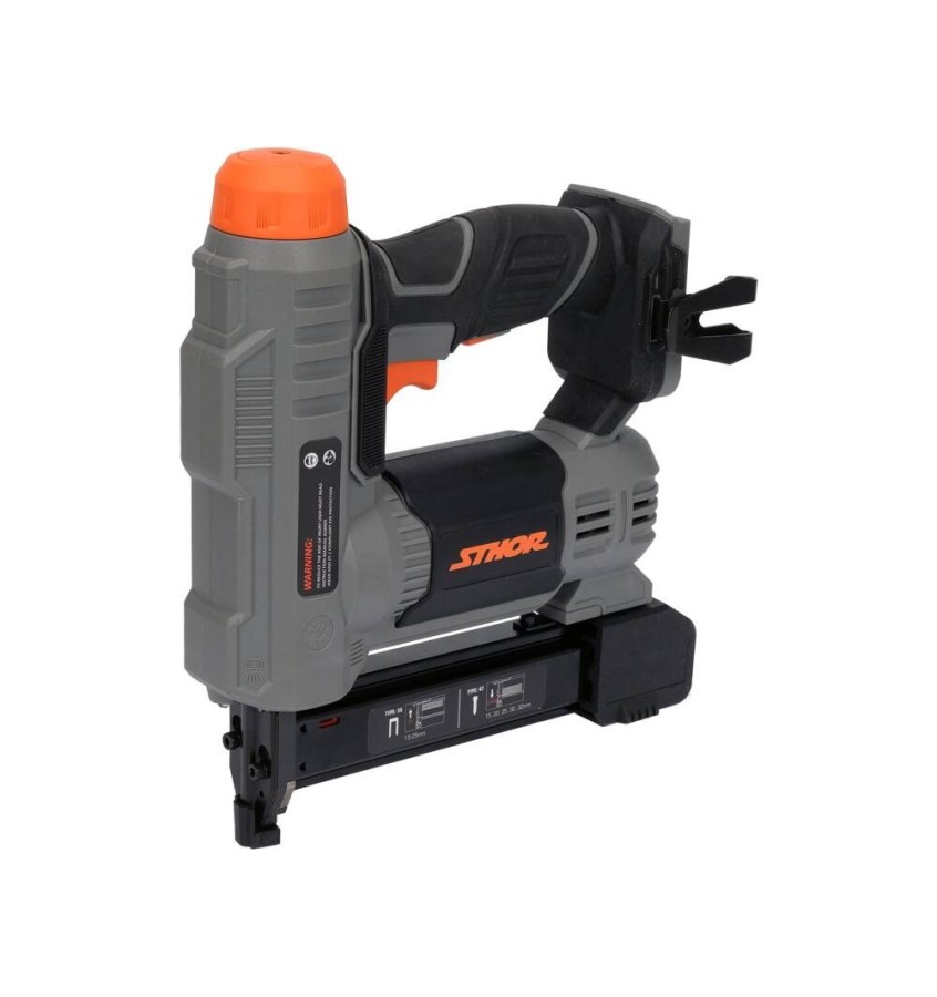Mocny taker wbijający zszywki oraz gwoździe. Doskonały do prac dekoratorskich, budowlanych i renowacji mebli, np. przy wykonywaniu paneli tapicerowanych lub ich montażu. Na pojedynczym ładowaniu akumulatora 2 Ah taker wbija od 500 do 1000 szt. gwoździ, w zależności od twardości drewna. Do narzędzia pasują najbardziej popularne zszywki i gwoździe.