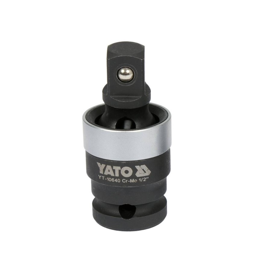 Przegub kulisty, udarowy 1/2''. Wykonany z unikalnej stali stopowej CrMo SCM-440, która ma dwukrotnie większą wytrzymałość na rozciąganie od zwykłej stali węglowej oraz trzykrotnie wyższą granicę plastyczności. Dzięki zastosowanej stali nasadki nie pękają pod wpływem pracy udarowej oraz dłuższy okres zachowują nominalny wymiar.