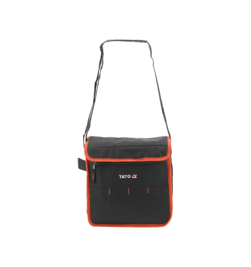 Torba narzędziowa z paskiem na ramię. Przeznaczona do przenoszenia drobnych narzędzi. Klapa torby zamykana na rzep. Na zewnętrznej ściance znajdują się uchwyty na drobne narzędzia i bezpieczna kieszeń zapinana na zamek błyskawiczny. Torba wykonana jest z nylonu technicznego Oxford 600D odpornego na rozdarcia.