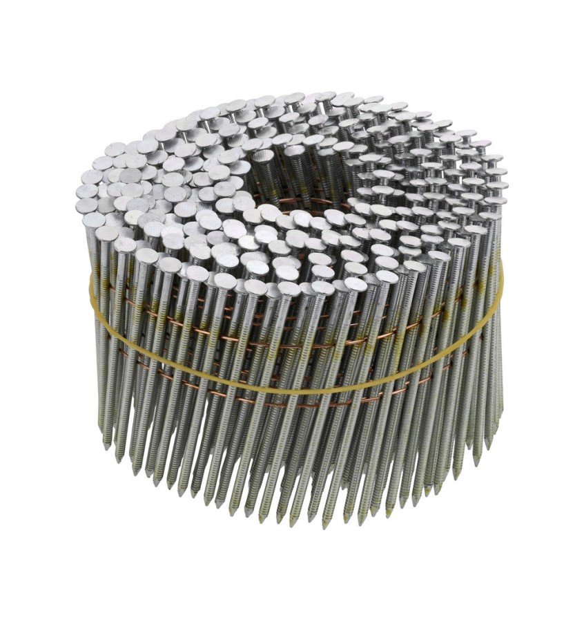 Gwoździe bębnowe ocynkowane łączone drutem pod kątem 15° - 16° Najczęściej wykorzystywane w dekarstwie przy łączeniu elementów drewnianych, szczególnie tam gdzie gwóźdź może być narażony na warunki pogodowe. Ocynk zmniejsza ryzyko rdzewienia. Gwoździe bębnowe znajdują swoje zastosowanie z udziałem gwoździarki bębnowej.