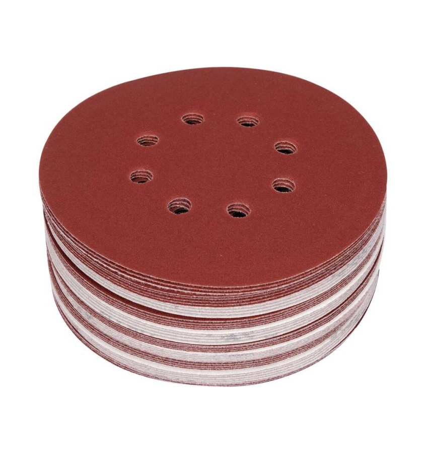 8 OTWORÓW, ŚREDNICA 150MM, ZIARNISTOŚĆ 180, MATERIAŁ: ALUMINIUM OXIDE, BACK: HOOK FASTENER,50SZT, SPOIWO: ŻYWICA EPOKSYDOWA, NASYP: PÓŁOTWARTY. KRĄŻKI ŚCIERNE Z SZEŚCIOMA OTWORAMI PRZEZNACZONE SĄ DO SZLIFOWANIA FARB, LAKIERU, POWIERZCHNI DREWNIANYCH I METALOWYCH. WSPÓŁPRACUJĄ ZE SZLIFIERKAMI OSCYLACYJNYMI I MIMŚRODOWYMI YT-82207, YT-82206