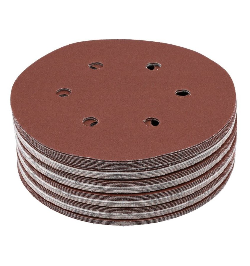 6 OTWORÓW, ŚREDNICA 150MM, ZIARNISTOŚĆ 220, MATERIAŁ: ALUMINIUM OXIDE, BACK: HOOK FASTENER,50SZT, SPOIWO: ŻYWICA EPOKSYDOWA, NASYP: PÓŁOTWARTY. KRĄŻKI ŚCIERNE Z SZEŚCIOMA OTWORAMI PRZEZNACZONE SĄ DO SZLIFOWANIA FARB, LAKIERU, POWIERZCHNI DREWNIANYCH I METALOWYCH. WSPÓŁPRACUJĄ ZE SZLIFIERKAMI OSCYLACYJNYMI I MIMŚRODOWYMI YT-09739, YT-09740.