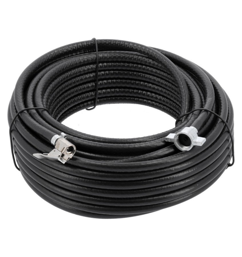 Profesjonalny, elastyczny przewód do sprężonego powietrza. Dostosowany do pojazdów posiadających sprężarkę powietrza. Stosowany do pompowania w busach, samochodach ciężarowych, naczepach, ciągnikach rolniczych itp. Umożliwia pompowanie wszystkich kół nawet w bardzo długim pojeździe. Przewód z obu stron zakończony złączami. Z jednej strony zakończony końcówką motylkową z gwintem wewnętrznym M16x1,5 mm dostosowaną do sprężarek samochodowych. Z drugiej przyłączeniową końcówką zaciskową dostosowaną do standardowego wentyla samochodowego. Wąż zbudowany jest z trzech warstw. Wewnętrzna wykonana jest z miękkiego PCV oraz gęstego, tekstylnego oplotu wzmacniającego z poliestru. Warstawa zewnętrzna z PCV odpornego na warunki atmosferyczne.